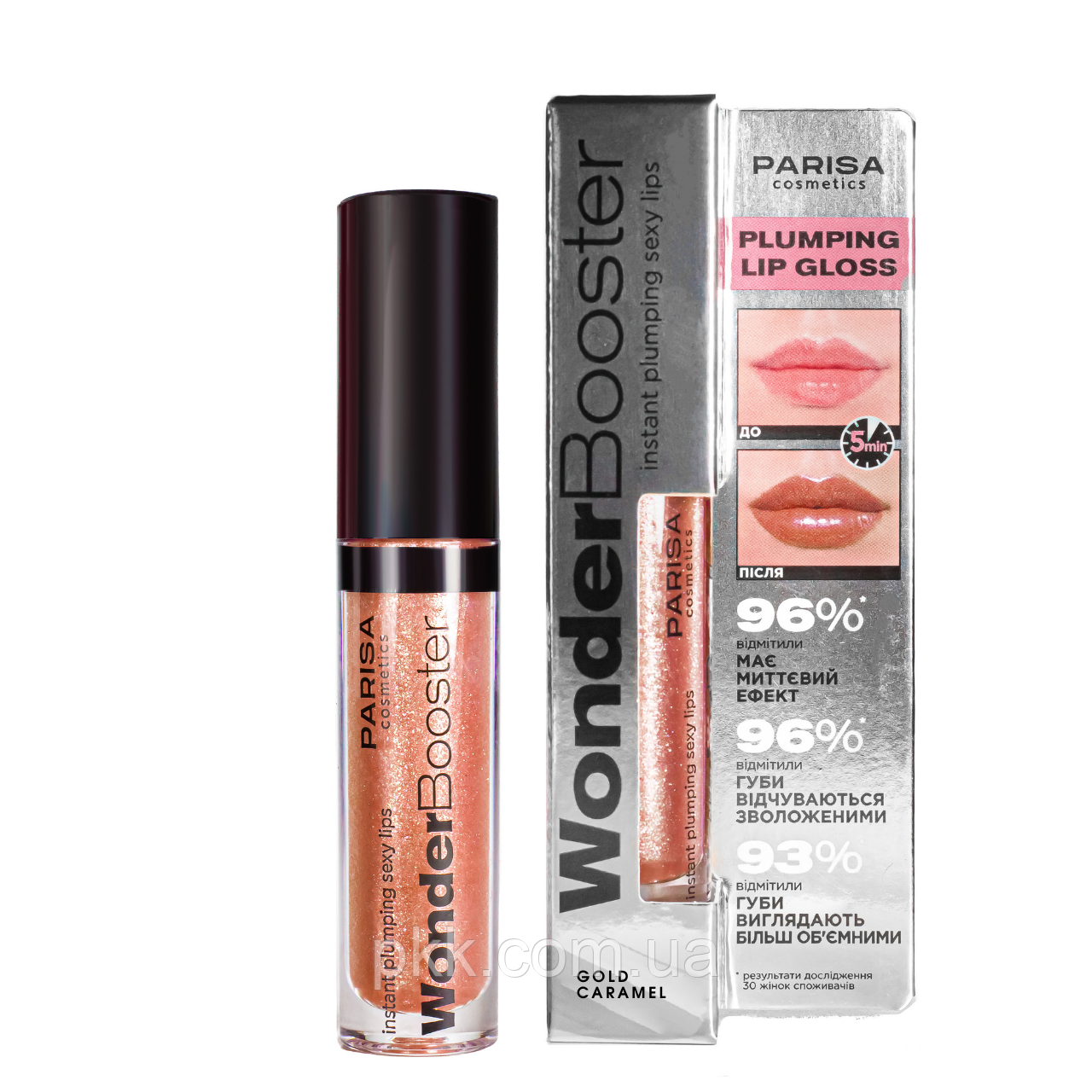 Блиск для об’єму губ з шимером Parisa Cosmetics Wonder booster PLG-01 № 03 Бежевий