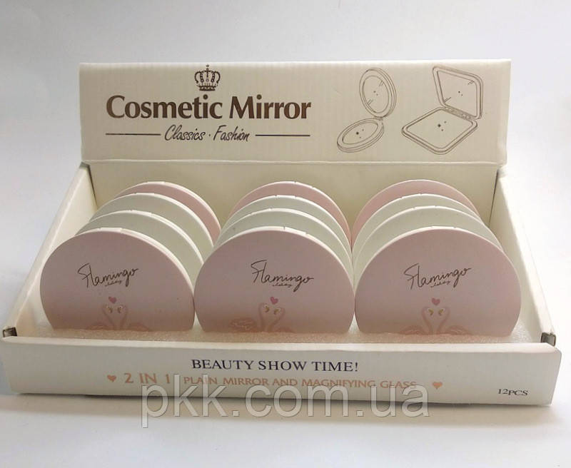Дзеркало косметичне Cosmetic Mirror Flamingo кишенькове подвійне кругле