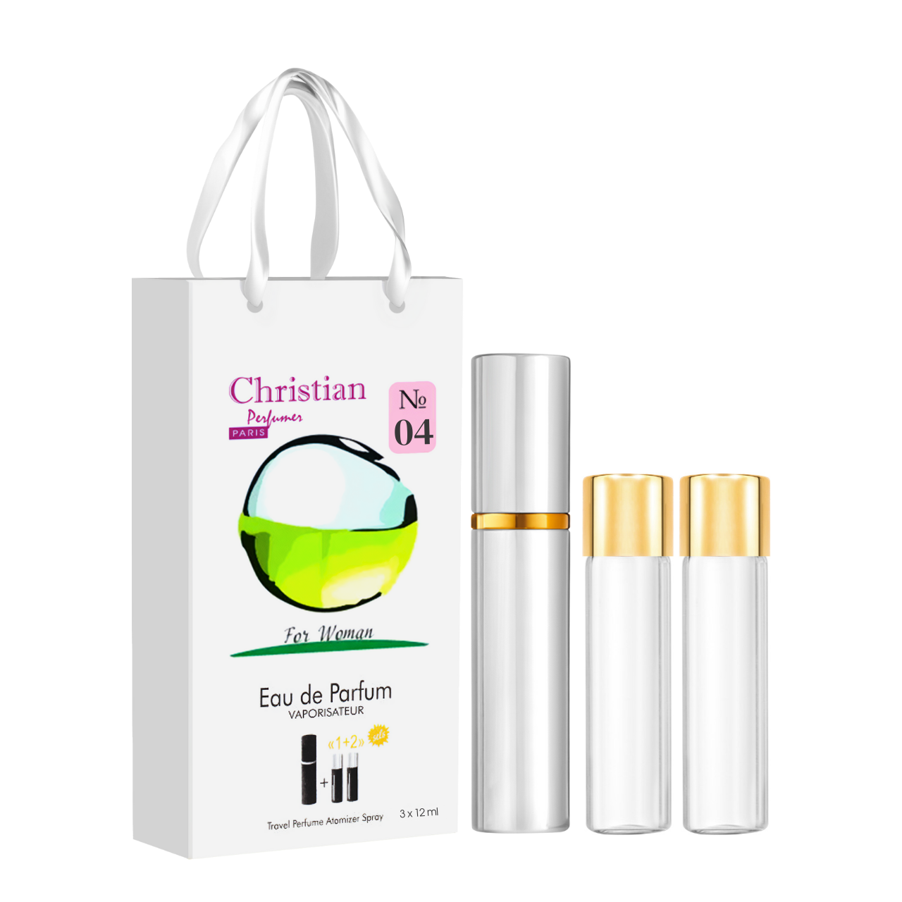Духи жіночі з феромонами Christian DKNY Be Delicious № 04 подарункові з атомайзером 3 шт по 12 мл