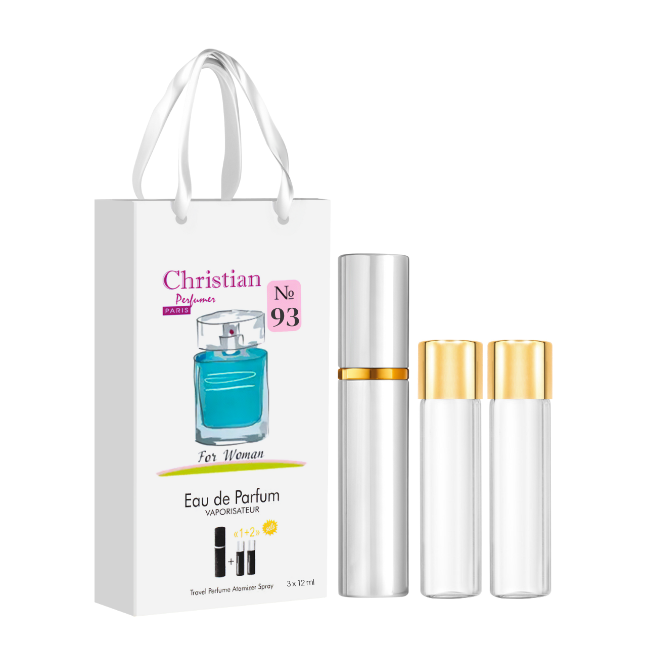 Жіночі парфумовані парфуми Christian атомайзер із двома запасними флаконами по 12 мл № 93