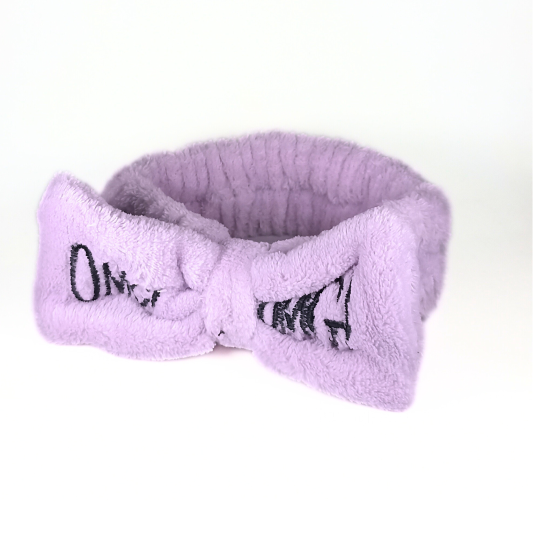 Косметична пов’язка для волосся OMG махрова кольорова з бантиком VT09-641, Бузкова