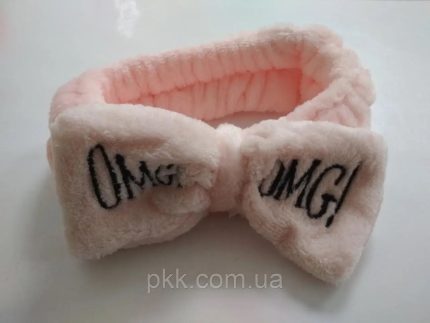 Косметична пов’язка для волосся OMG махрова кольорова з бантиком VT09-641, Світло-рожевий