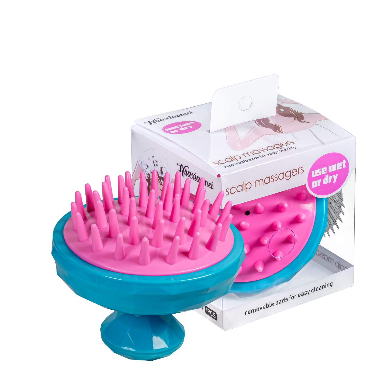 Масажна щітка шабер для миття голови з контейнером для шампуню HXM007