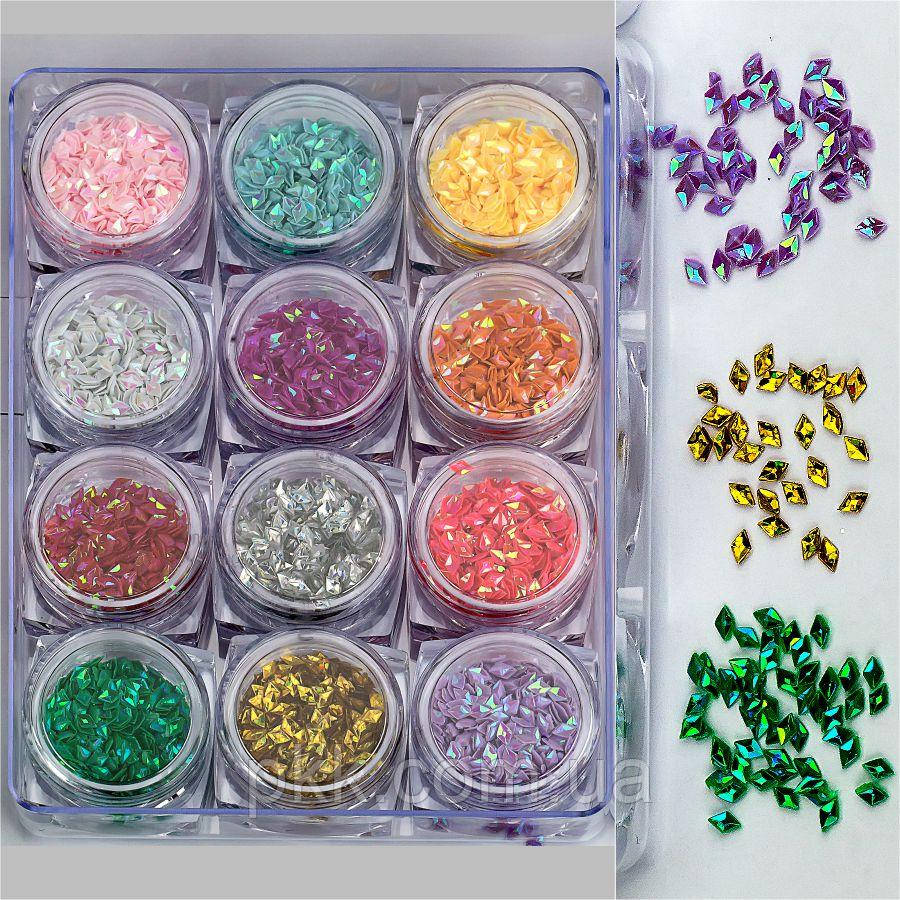 Набір декору для манікюру мерехтливі кристали 12 кольорів в упаковці (GC-23)