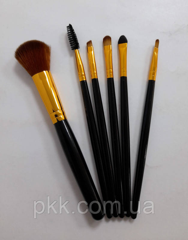 Набір пензликів для макіяжу L’oren з 6 інструментів в прозорому футлярі FQ-91 Чорні