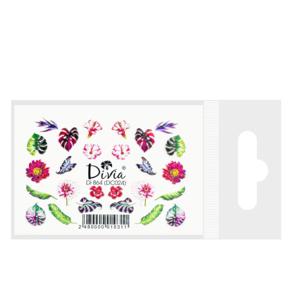 Наклейки для нігтів Divia водна 3D кольорова Di864 DC023 Квіти листочки