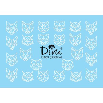 Наклейки для нігтів Divia водна 3D контурна Di863 D-008.b Волк ведмідь сова