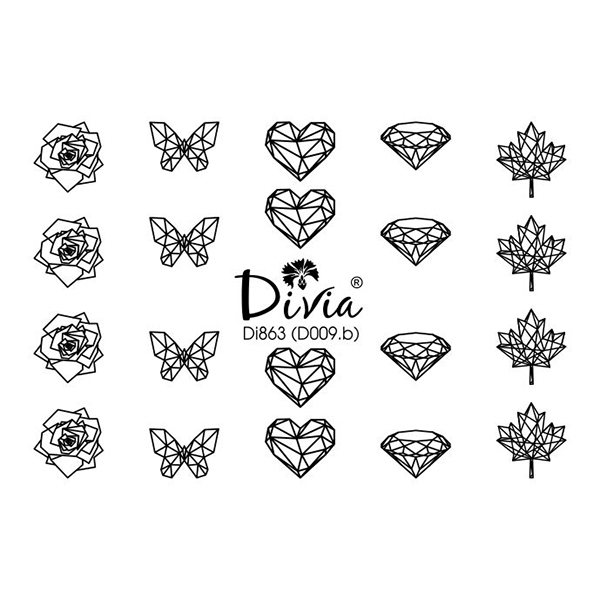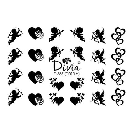 Наклейки для нігтів Divia водна 3D контурна Di863 D-009.b Серце лист троянда
