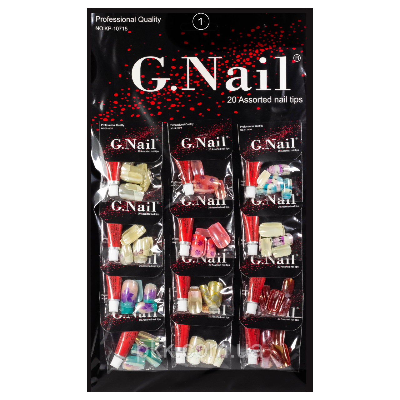 Нігті накладні голографічні з малюнком і клеєм упаковка 12 штук G Nails KP-10715 № 1