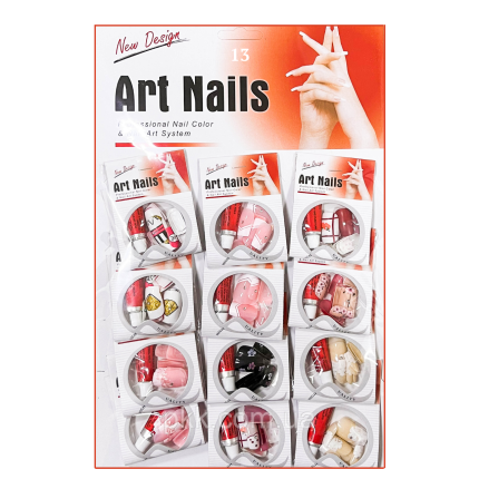 Нігті накладні кольорові з малюнком та камінчиками упаковка 12 штук Art Nails № 14