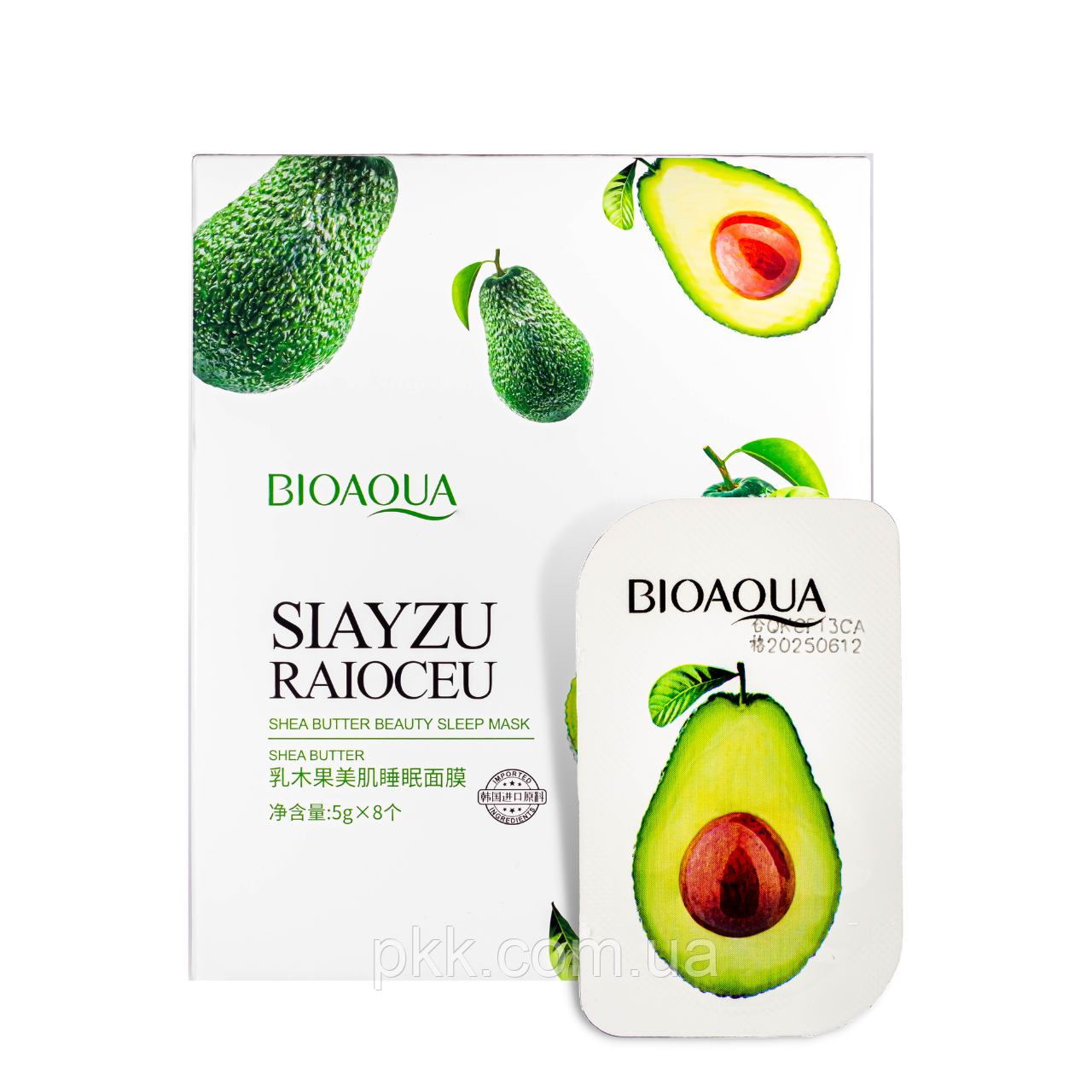 Нічна маска для обличчя зволожуюча Bioaqua Siayzu Raioceu c авокадо і маслом ши