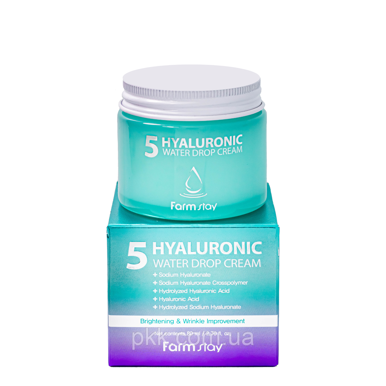 Омолоджувальний крем для обличчя освітлювальний з гіалуроновою кислотою FarmStay 5 Hyaluronic Water Drop 80 мл