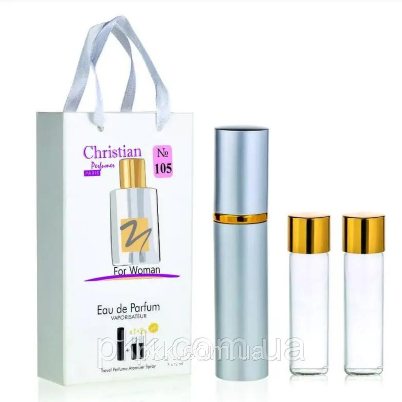 Парфуми з атомайзером у подарунковій упаковці 3 шт по 12 мл Christian “Metallique” № 105