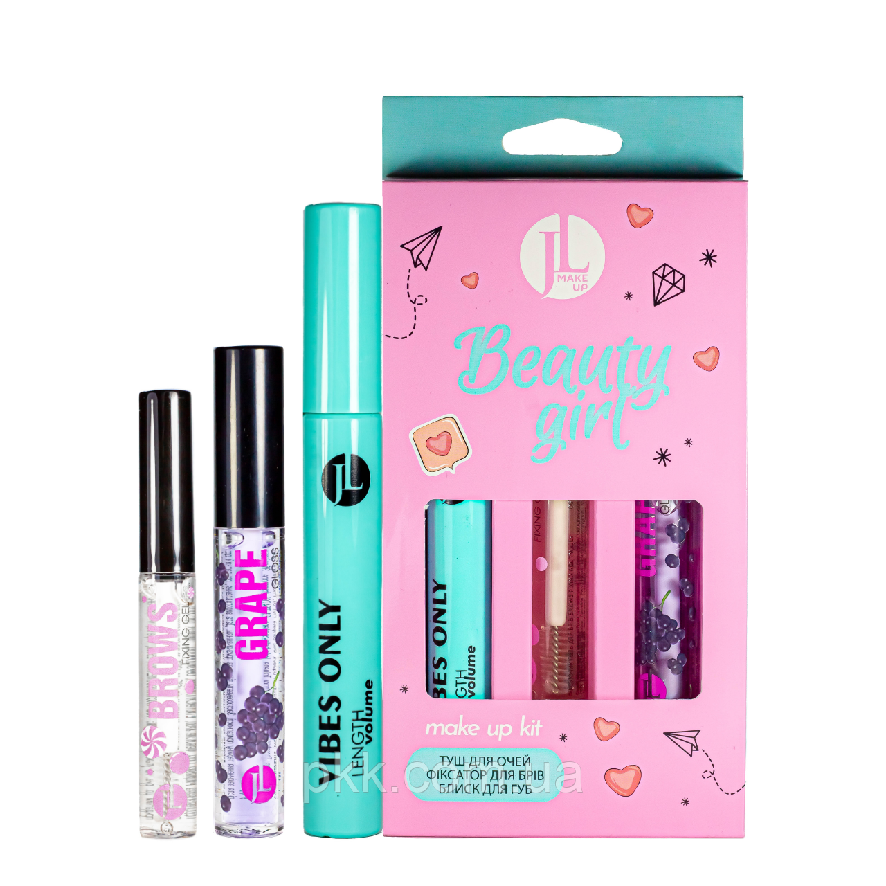 Подарунковий набір косметики для макіяжу Jovial Luxe Beauty Girl туш блиск і засіб для брів