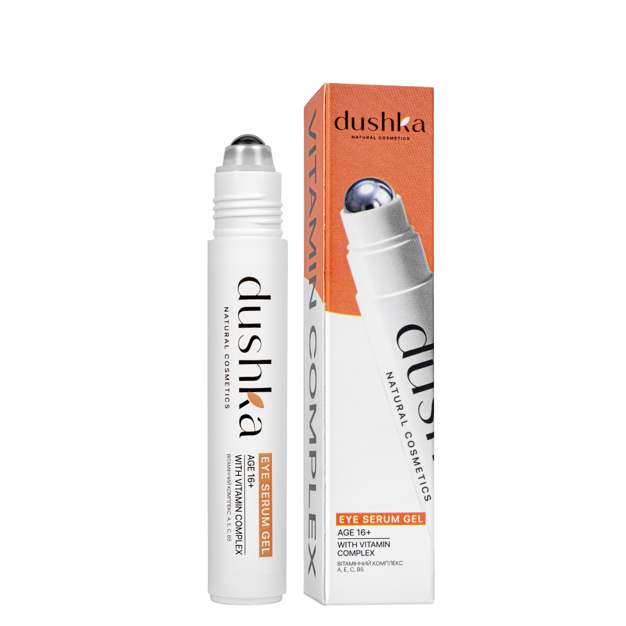 Сироватка-гель для шкіри навколо очей Dushka “З вітамінним комплексом” роликова 16+, 15 мл