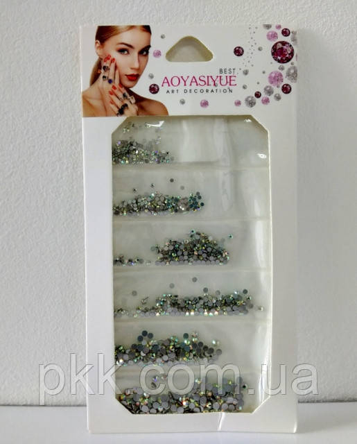 Стрази для манікюру AOYASIYUE Nail Decoration на планшетці різного діаметру